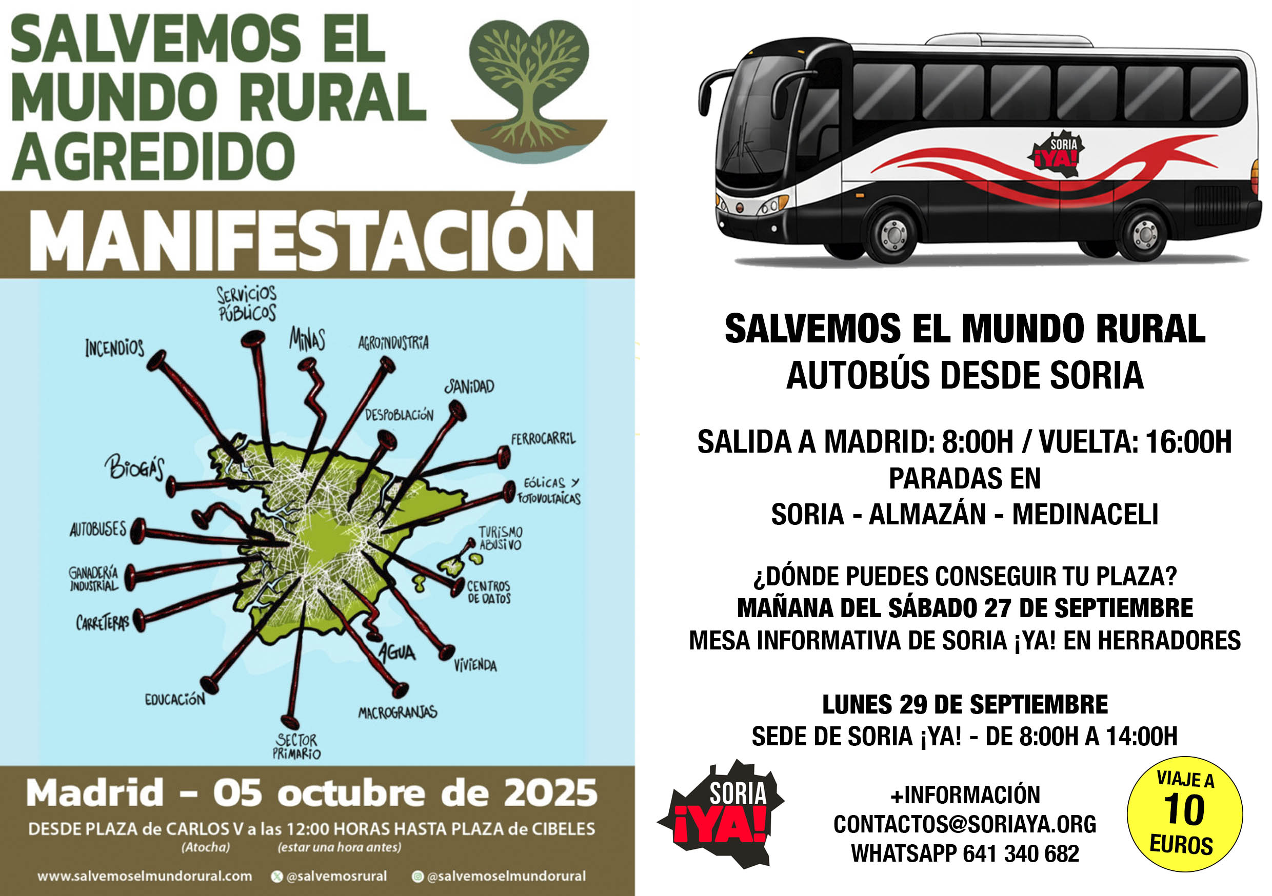 Autobús desde Soria para acudir a la Manifestación «Salvemos el mundo rural»