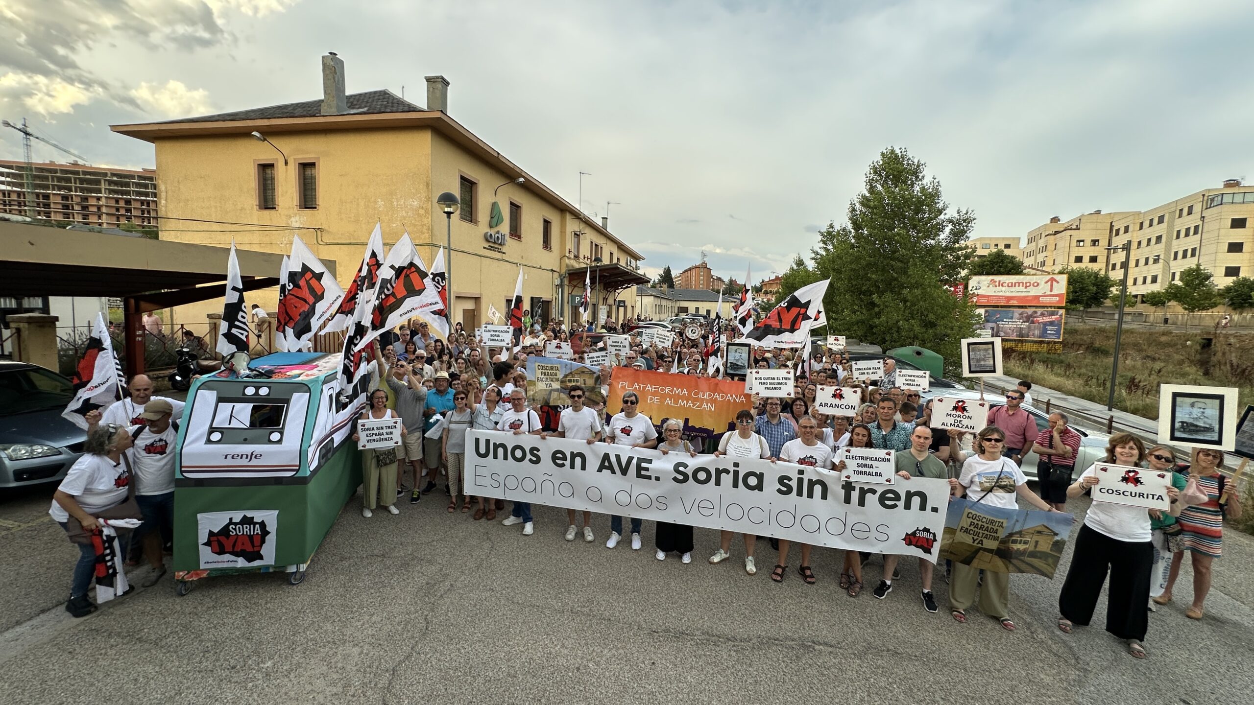 La fecha elegida no es casual: en 2025 se cumplen 40 años del inicio del cierre de 3 líneas ferroviarias en Soria y más de 40 estaciones en otros tantos pueblos sorianos. Soria ¡YA! denuncia que, desde entonces, los diferentes gobiernos de España dirigidos por PSOE y PP, han excluido a la provincia de todos los planes e inversiones estratégicas mientras otros territorios recibían miles de millones para alta velocidad, nuevas estaciones y se les conectaba a los corredores transeuropeos. «No es falta de dinero, es falta de voluntad, porque somos pocos», se ha escuchado ante la multitud congregada.