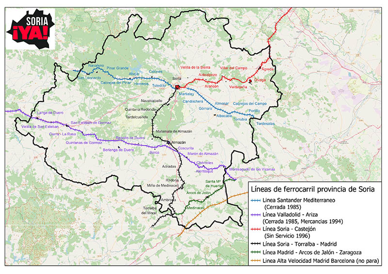 Entre los motivos que justifican la protesta, Soria ¡YA! destaca el abandono del ferrocarril en la provincia durante décadas: el cierre de tres líneas y 40 estaciones desde 1985; la falta de impulso en la línea Soria–Torralba, que sigue sin electrificar ni disponer de una tercera frecuencia y en la que no se han puesto en marcha mejoras en la calidad del servicio; la reapertura de la línea Soria–Castejón, que sigue en el aire a pesar de ser un compromiso del presidente del Gobierno Pedro Sánchez.